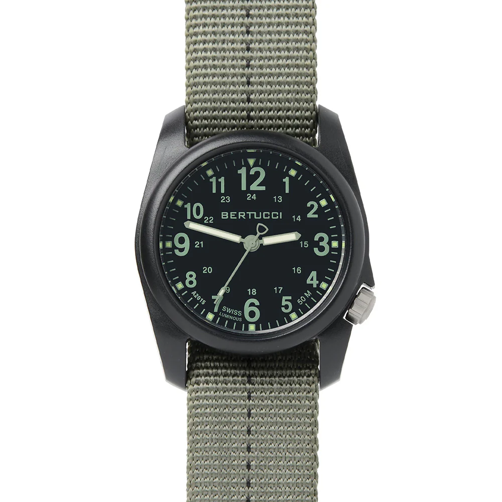 Bertucci Men's DX3 Plus Resin Case and Green Nylon Strap Black Watch - 11040