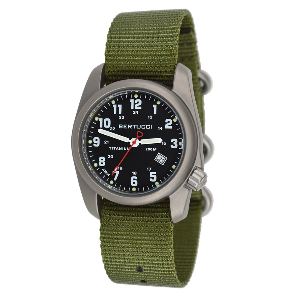 Bertucci A-2T Men's Watch - Titanium - Olive Nylon Strap - Black Dial - 12122