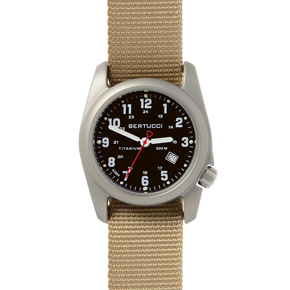 Bertucci Men's A-2T Titanium Watch - Khaki Nylon Strap - Black Dial - 12202