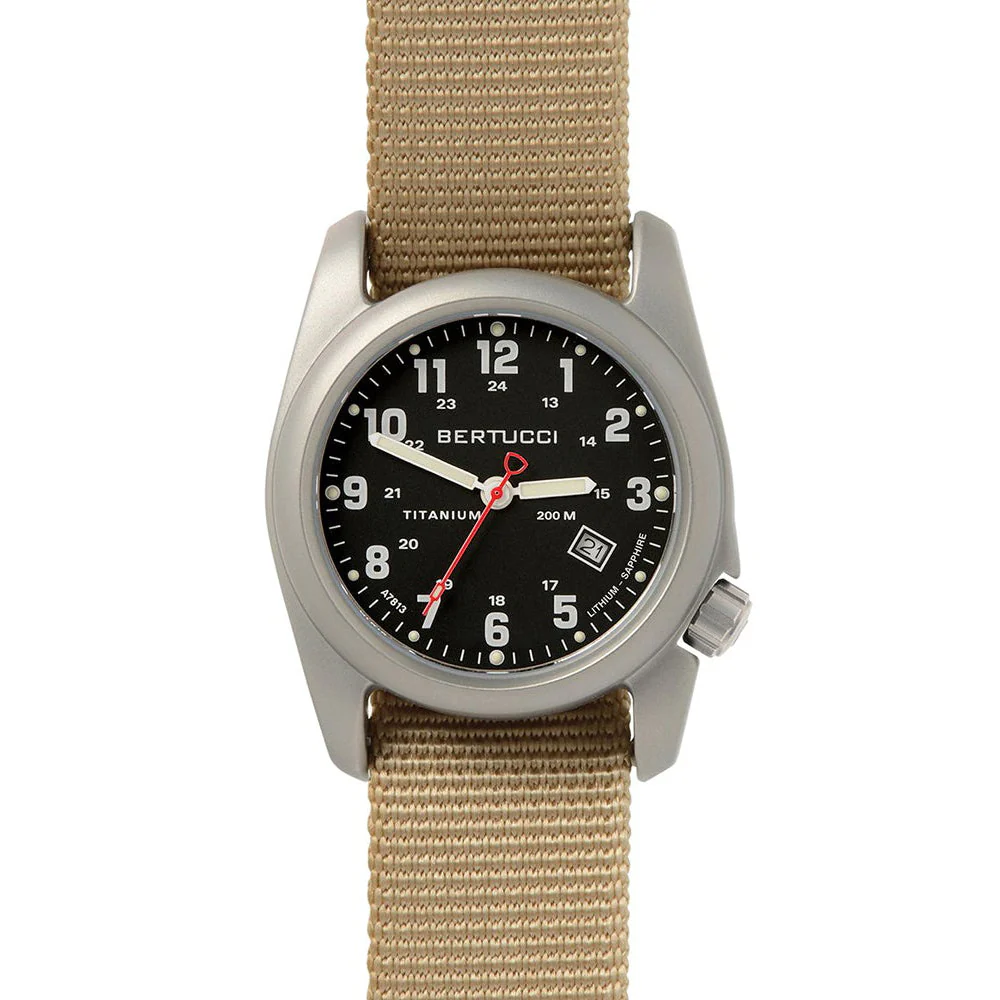 Bertucci Men's A-2T Original Classic Analog Titanium Watch-Beige Nylon Strap-Black Dial