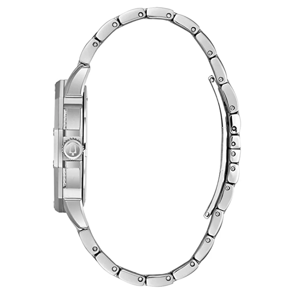 Bulova Multifunction Men's Crystal Stainless Steel Bracelet Band Silver Dial Watch - 96C134. From the Bulova Men’s Crystal Collection comes this boldly embellished timepiece. Set in a stainless steel case and adorned with 300 Swarovski Crystals on the bezel bracelet and dial this piece was made for the sophisticated. This watch features a day and date feature flat mineral crystal quartz movement and water resistance to 30 meters. This timepiece is made complete by a stainless steel bracelet and deployment closure for security. Stylish and attractive watch that creates an awesome personality. Directional exciting and diverse This Collection makes and breaks the fashion rules. Scouring the globe for inspiration our Design Team is inspired by fashion’s most cove-table trends; providing you with a cutting edge wardrobe season upon season. Band Materials: Stainless Steel Case Sizes: Large (40mm & Over) Case Shapes: Round Display: Analog Movements: Quartz Watch Styles: Dress Dial Color: Silver Diameter: 42 mm Thickness of Case: 9.8mm Features: Calendar/Date Water Resistant Crystal Accents Watch Type: Bracelet Water Resistance: 30 Meters